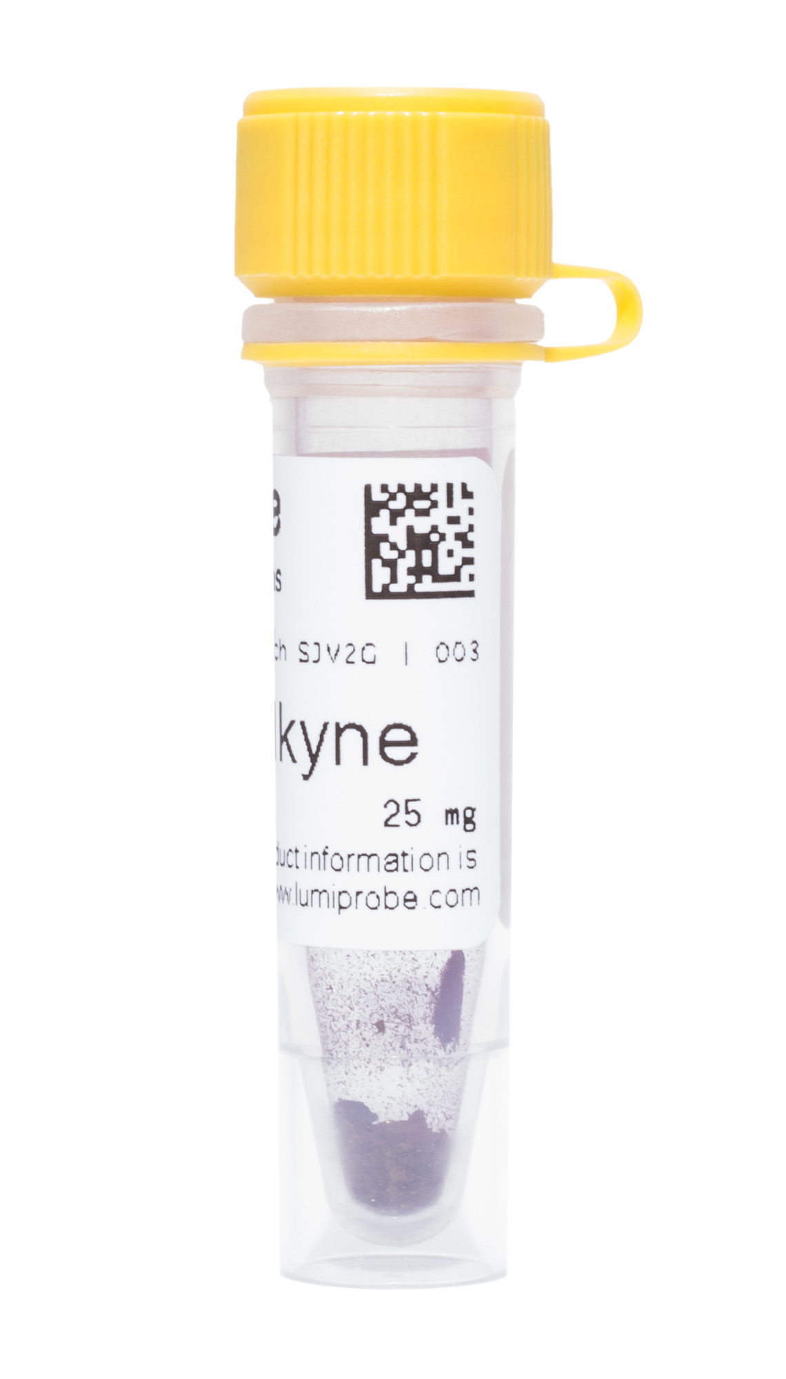 AF 555 алкин — желтый флуоресцентный краситель, содержащий концевую алкиновую группу для биоортогональной конъюгации посредством катализируемого медью(I) азид-алкинового циклоприсоединения (CuAAC). Краситель селективно реагирует с модифицированными азидом биомолекулами, образуя стабильные триазольные связи в мягких водных условиях.