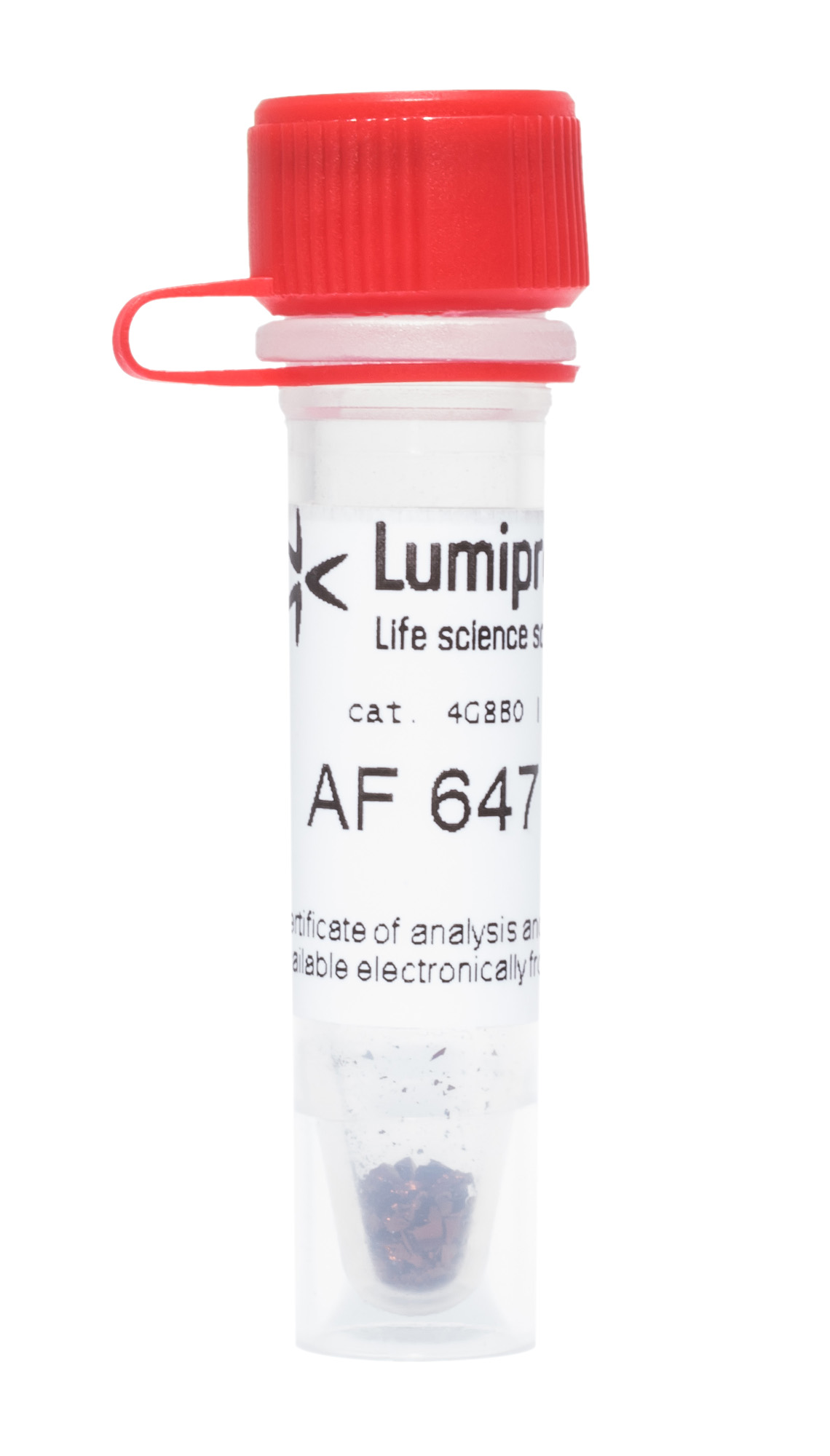Краситель хорошо растворим в воде и устойчив к фотообесцвечиванию, обеспечивая стабильную интенсивность сигнала во время длительной визуализации или многократного возбуждения. AF 647 алкин обычно используется для мечения белков, гликопротеинов, нуклеиновых кислот, липидов и других биомолекул, модифицированных азидными группами, и введенными посредством метаболического мечения или химической модификации.