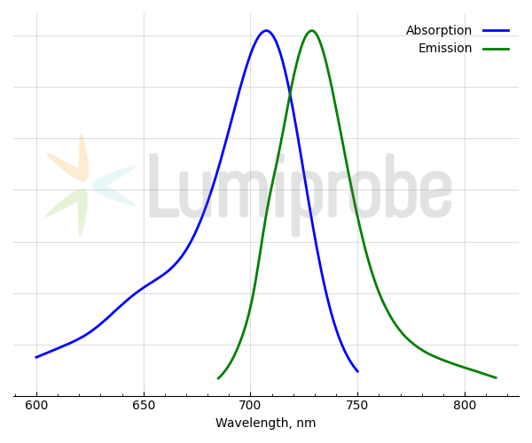 | Максимум возбуждения/поглощения, нм: | 707 |