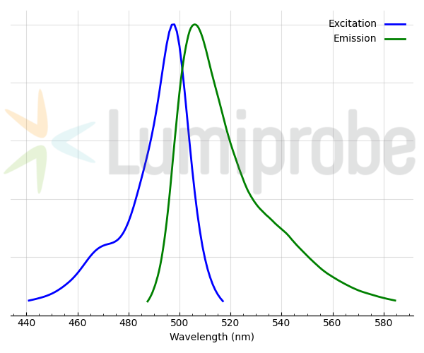 | Максимум возбуждения/поглощения, нм: | 498 |