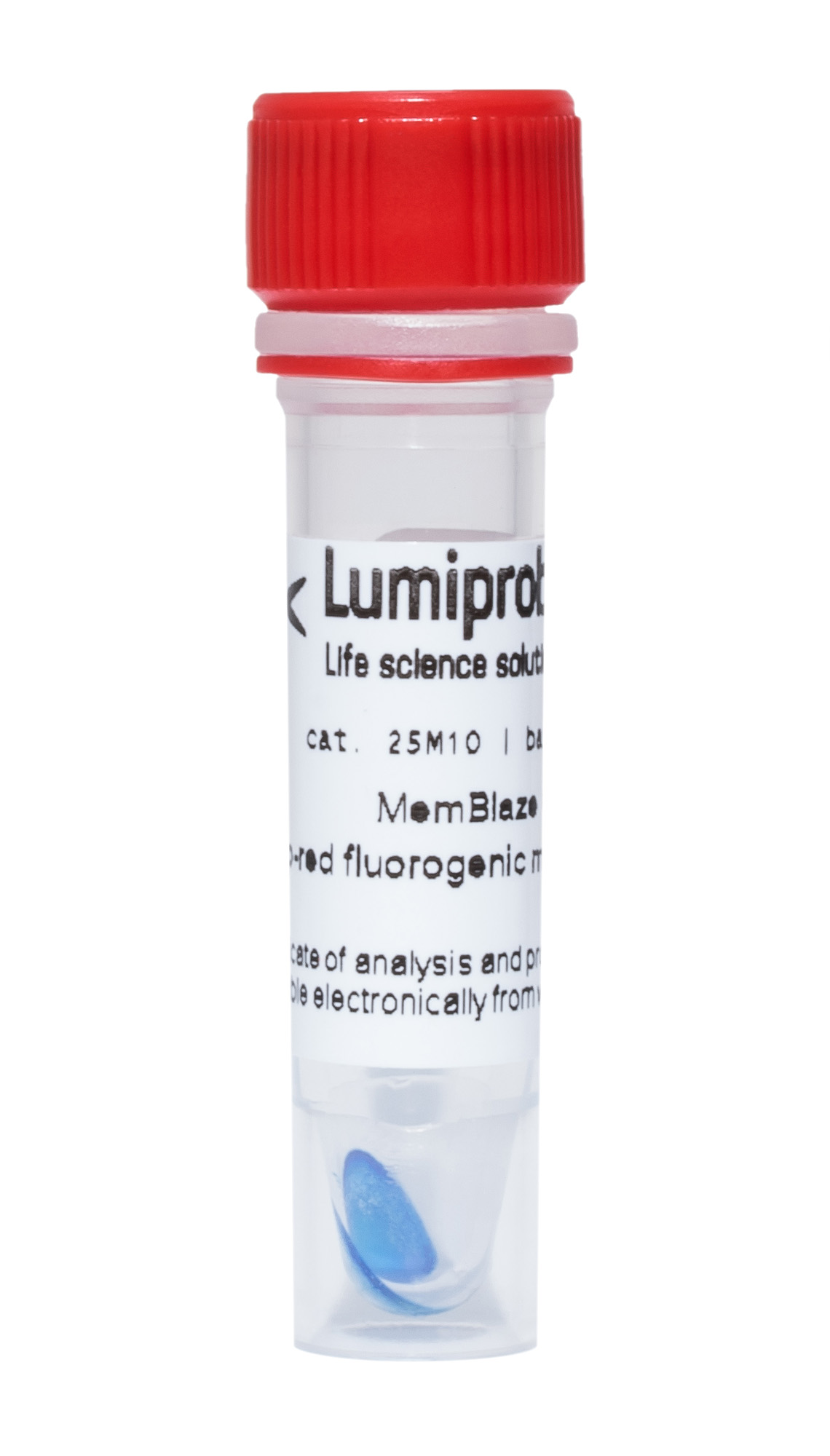 В водной среде MemBlaze® 640 образует слабофлуоресцентные агрегаты, однако при взаимодействии с биологическими мембранами его флуоресценция многократно усиливается, обеспечивая яркое и равномерное окрашивание плазматической мембраны с исключительно низким фоном. Флуорогенный механизм мечения позволяет использовать протоколы без этапов отмывки и достигать высокого отношения сигнал/шум даже при наномолярных рабочих концентрациях.