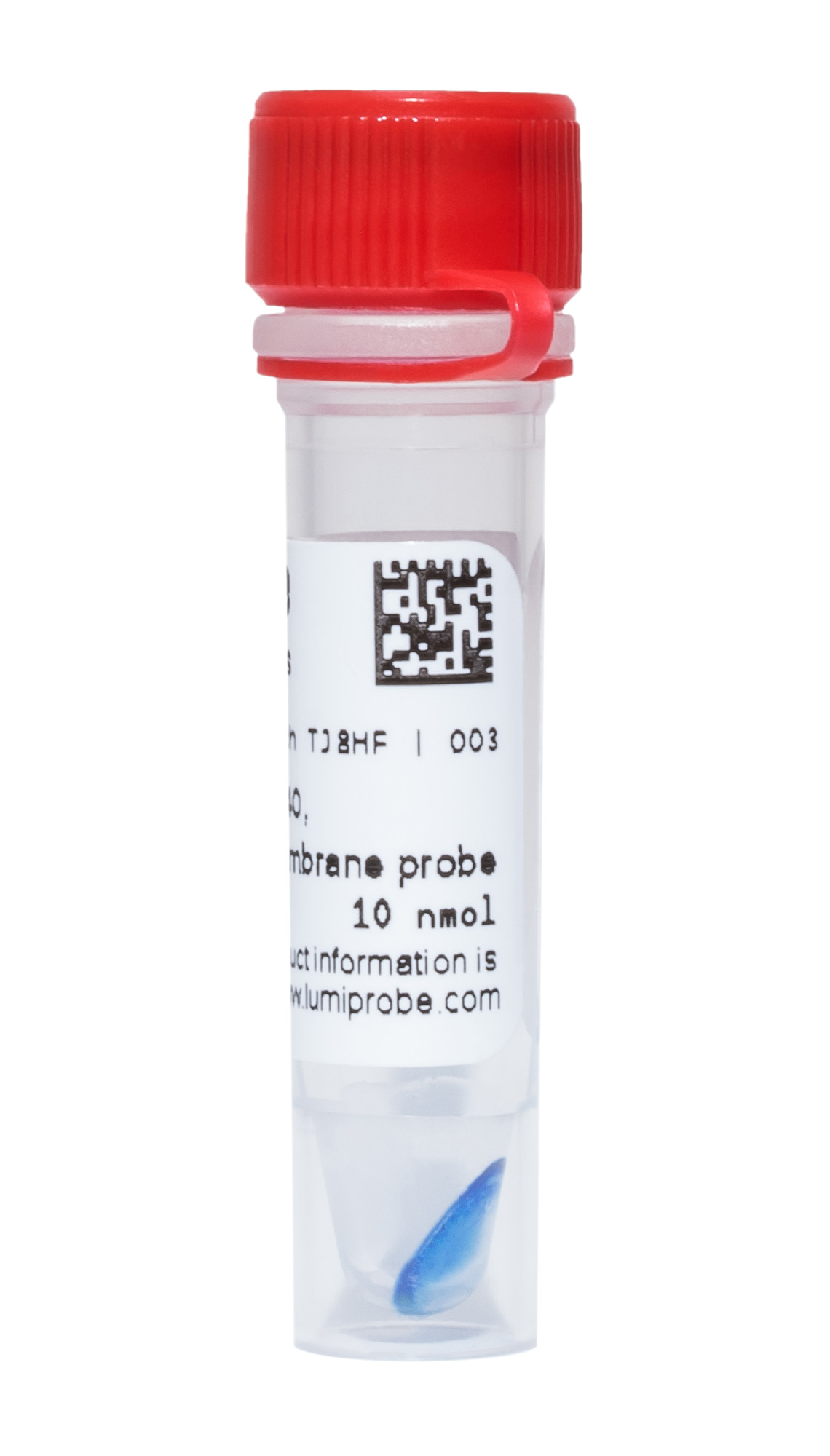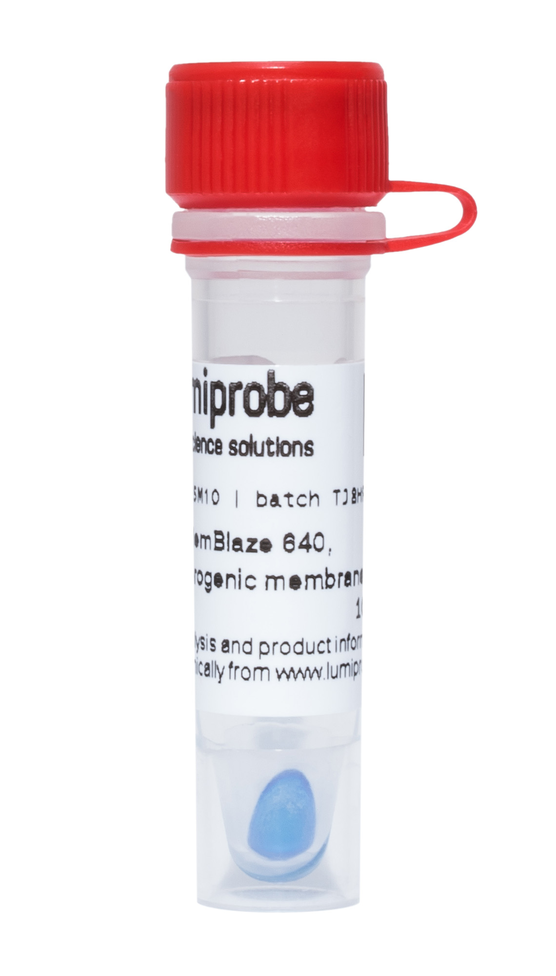 MemBlaze® 640 — дальне-красный флуоресцентный мембранный краситель семейства MEMBRIGHT® [1], предназначенный для быстрого и высококонтрастного мечения живых и фиксированных клеток. Краситель состоит из липофильного цианинового флуорофора и амфифильных якорных групп, обеспечивающих быстрое и селективное встраивание зонда в липидные бислои.