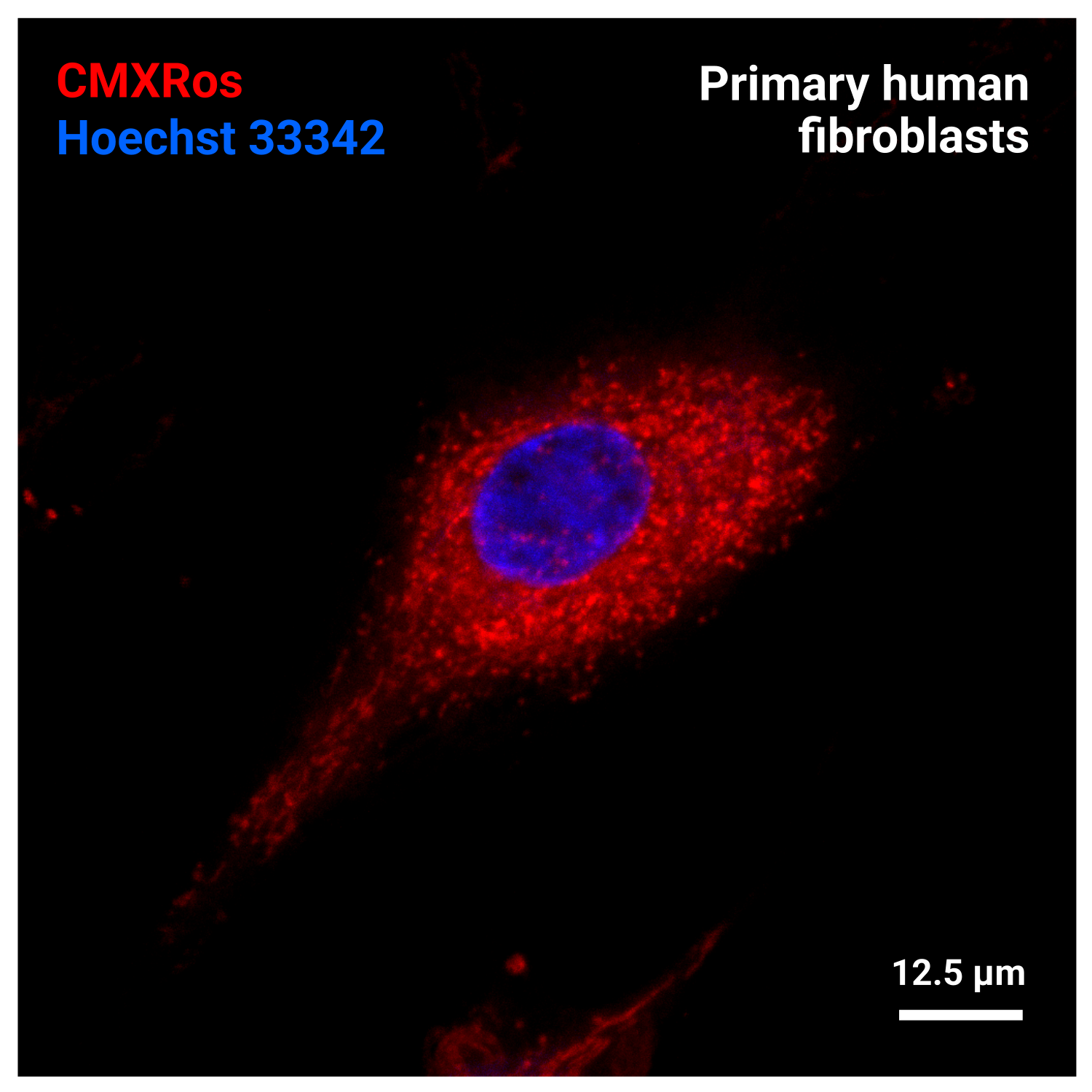 LumiTracker Mito Red CMXRos — катионный красный флуоресцентный краситель, окрашивающий митохондрии в живых клетках. CMXRos представляет собой гидрофобное соединение, которое пассивно диффундирует через плазматическую мембрану и избирательно накапливается в активных митохондриях в зависимости от мембранного потенциала в них. Окрашивание LumiTracker Mito Red CMXRos сохраняется после фиксации альдегидами. Этот краситель обычно используется для оценки состояния клеток, а также как краситель для локализации митохондрий.
