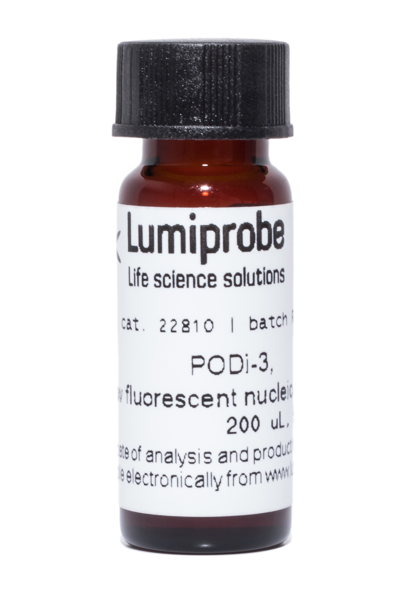 PODi-3 — димерный карбоцианиновый краситель с флуоресценцией в желтой части спектра. PODi-3 — непроникающий в живые клетки ядерный краситель, который не флуоресцирует в отсутствие нуклеиновых кислот. Краситель значительно (примерно в 500 раз) усиливает свою флуоресценцию при связывании с двуцепочечной ДНК.