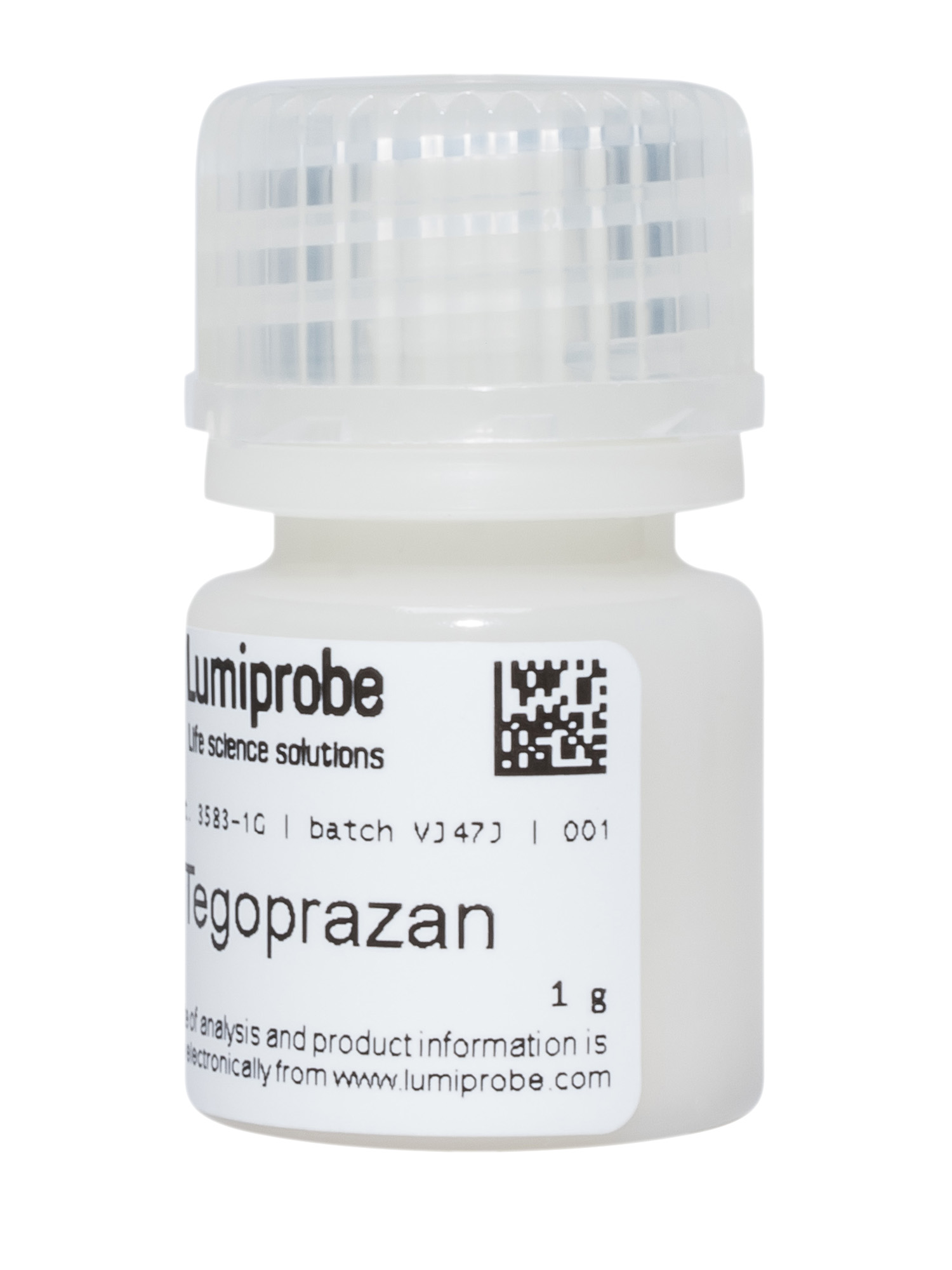 Тегопразан — это обратимый ингибитор протонной помпы (H+/K+-АТФазы) париетальных клеток желудка, относящийся к классу калий-конкурентных блокаторов (P-CAB). В отличие от традиционных ингибиторов протонной помпы, тегопразан не требует кислотной активации и блокирует фермент напрямую, что обеспечивает быстрое наступление эффекта и стабильное подавление секреции кислоты независимо от приема пищи. Тегопразан используется для лечения кислотозависимых заболеваний: при эрозивном и неэрозивном гастроэзофагеальном рефлюксе (ГЭРБ), для заживления язвы двенадцатиперстной кишки, а также в составе комбинированной терапии для эрадикации Helicobacter pylori. В доклинических исследованиях тегопразан применяется для изучения физиологии кислотопродукции, оценки эффектов новых комбинаций с гастропротекторами и антибиотиками, а также для разработки методов лечения атрофического гастрита и профилактики гастропатий, индуцированных нестероидными противовоспалительными препаратами (НПВП).